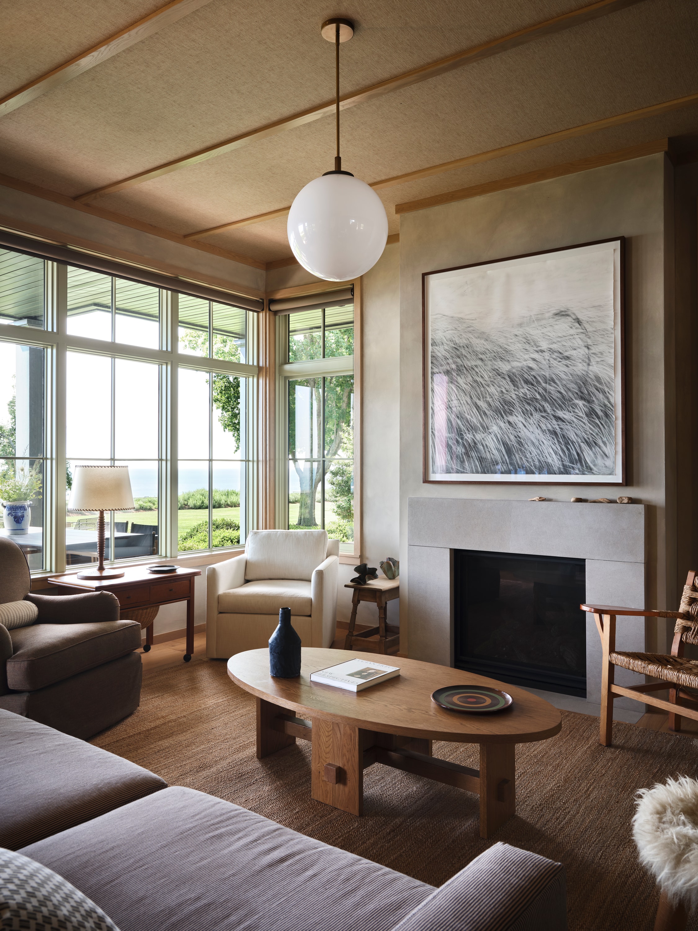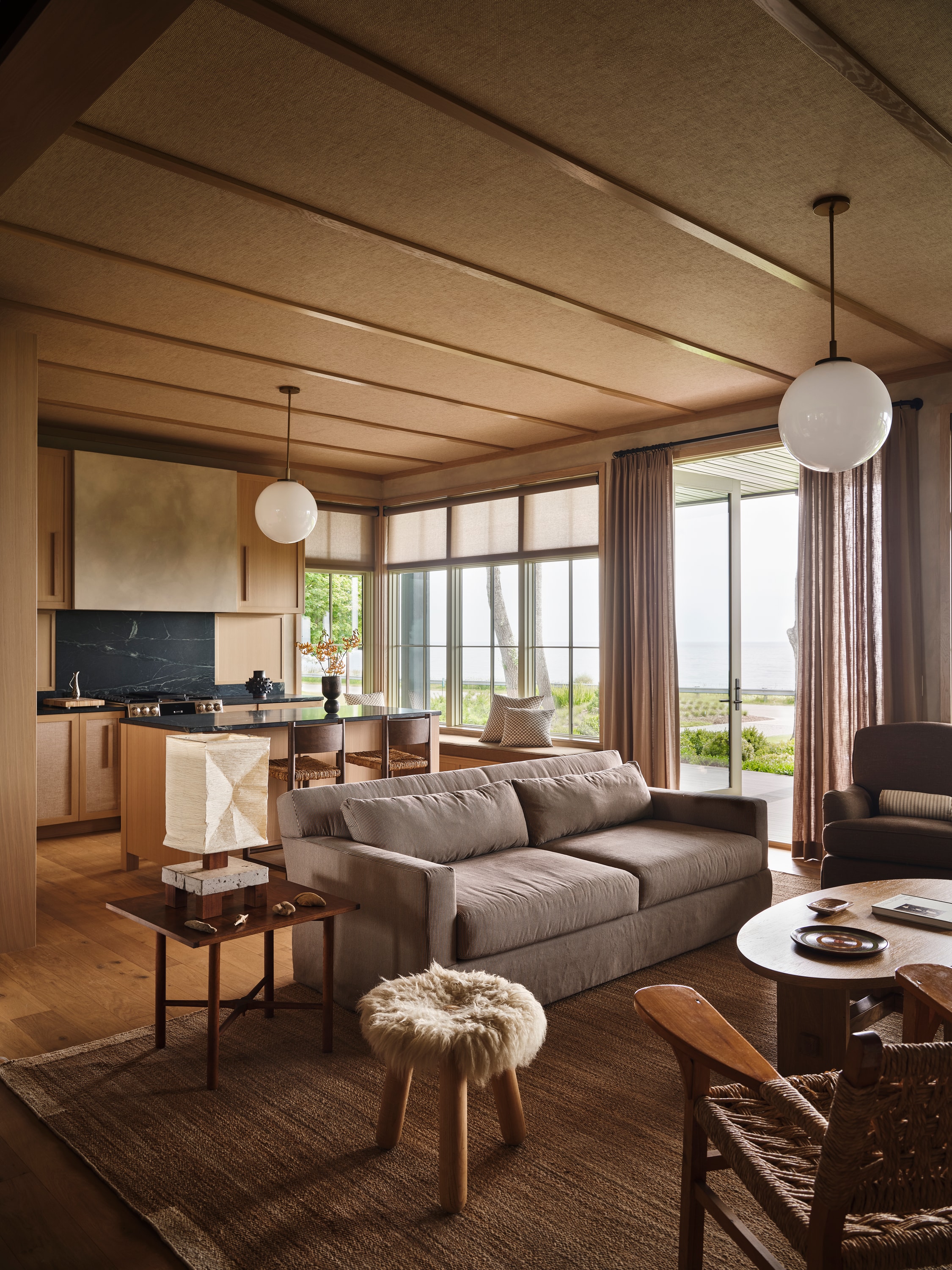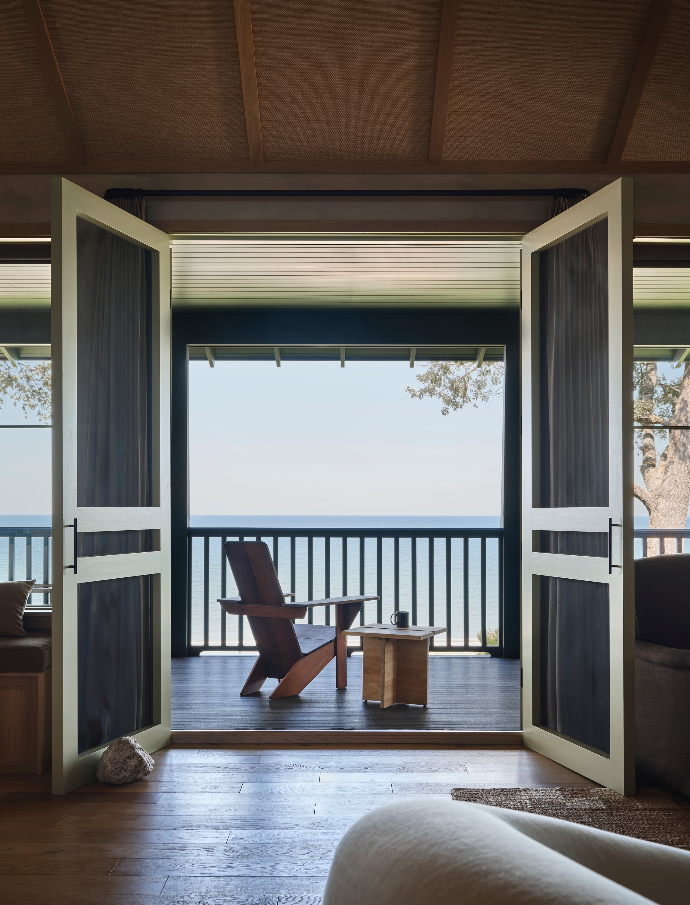Object curation and styling for a resort on Lake Michigan.